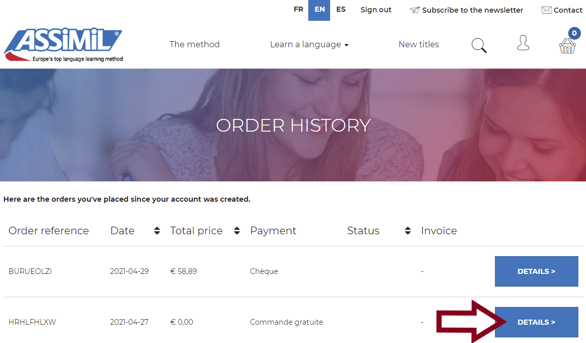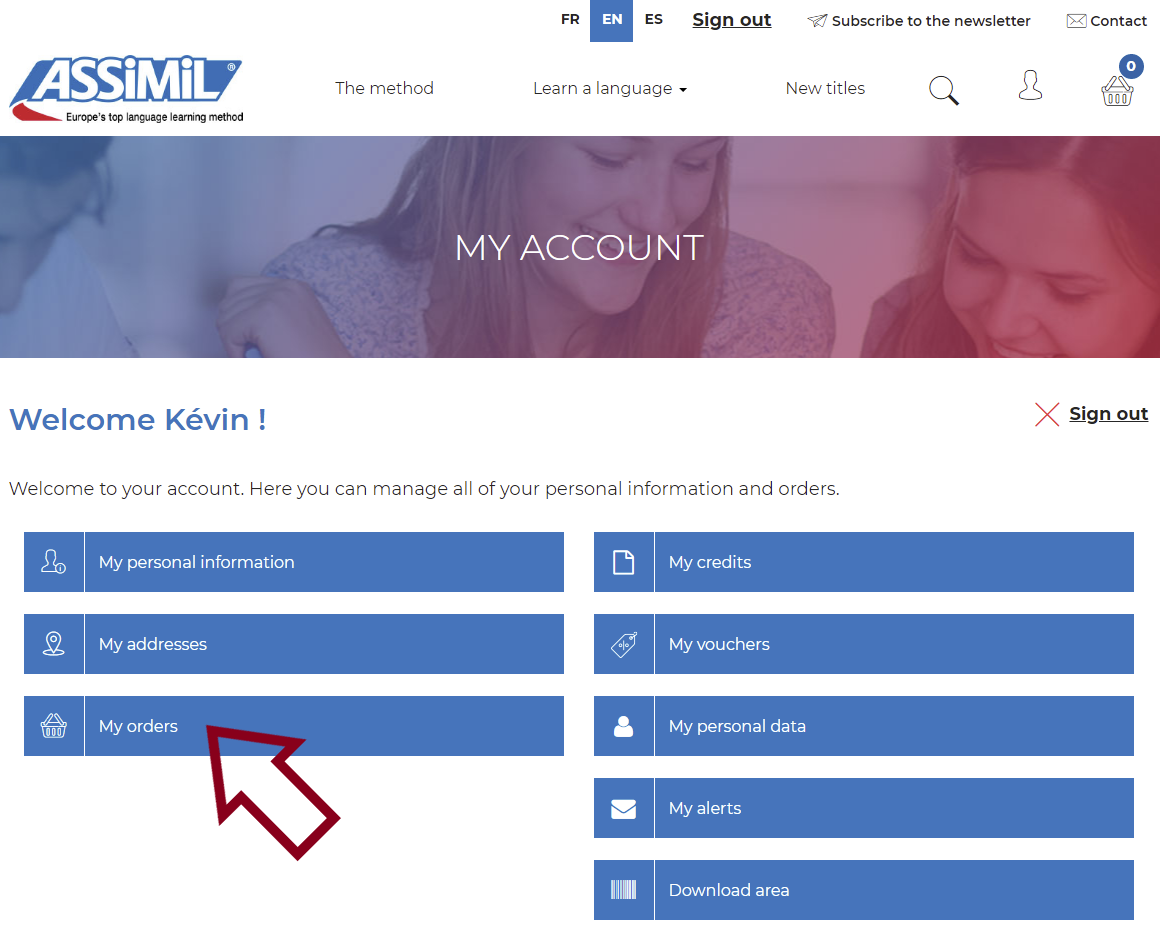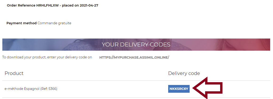 The code must be registered at https://mypurchase.assimil.online.