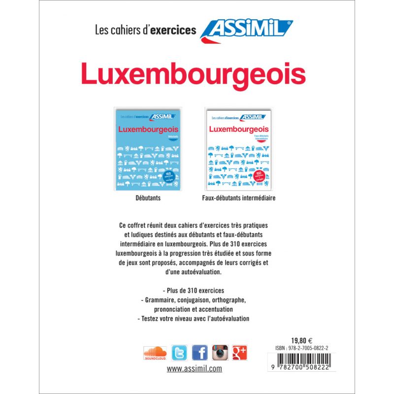 This box set comprises two highly practical yet playful exercise books to help learners as they progress from beginner level to about C1 (Common European Framework of Reference for languages). There are over 300 progressively challenging Luxembourgish exercises designed as games, along with answers and self-assessment.
