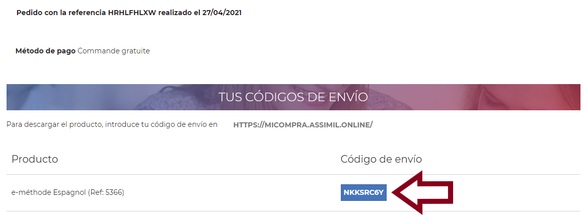 Este código se registrará en el sitio web https://micompra.assimil.online.