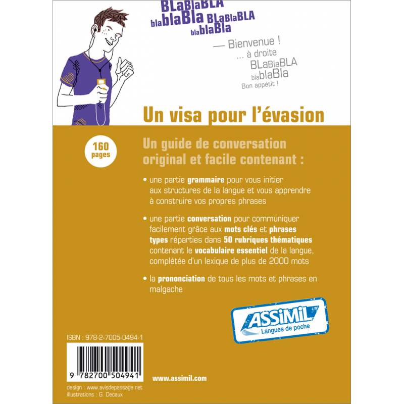 Aunque el francés es una de las lenguas oficiales, los habitantes de Madagascar hablan el malgache, idioma semejante al indonesio y al maorí, entre otros. En la guía figuran palabras clave, frases por temas, expresiones coloquiales y un léxico que reúne el vocabulario práctico para viajar.