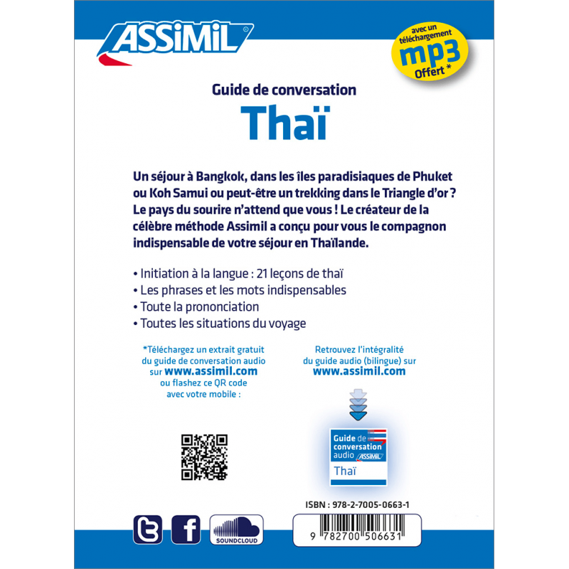 ¿Una estancia en Bangkok, en las paradisíacas islas de Phuket o Koh Samui, o quizá un trekking por el Triángulo de Oro ? ¡El país de la sonrisa te está esperando ! El creador del famoso método Assimil ha diseñado para ti al compañero moderno e indispensable de tu estancia en Tailandia.