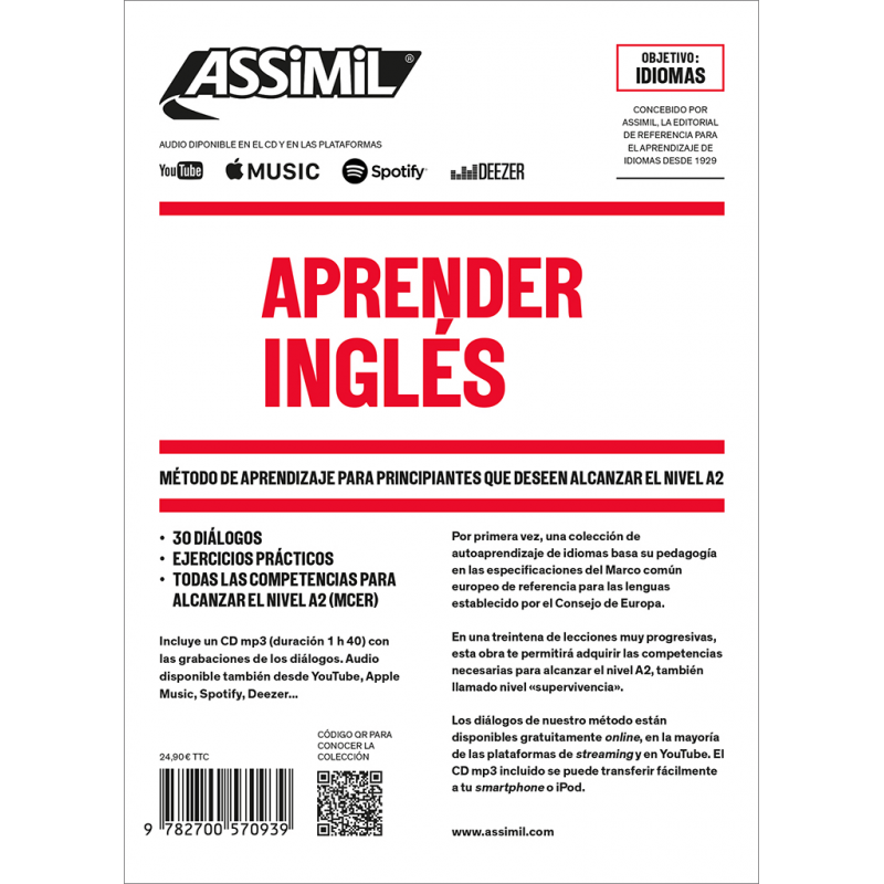 Aprender inglés nunca había sido tan fácil con nuestro nuevo método, libro y audio accesible en CD y plataformas de streaming gratis. Destinado a principiantes de inglés amantes de la movilidad permite, en unas treinta lecciones muy progresivas en forma de diálogos, adquirir las competencias necesarias correspondientes al nivel A2, denominado « nivel de supervivencia ».
