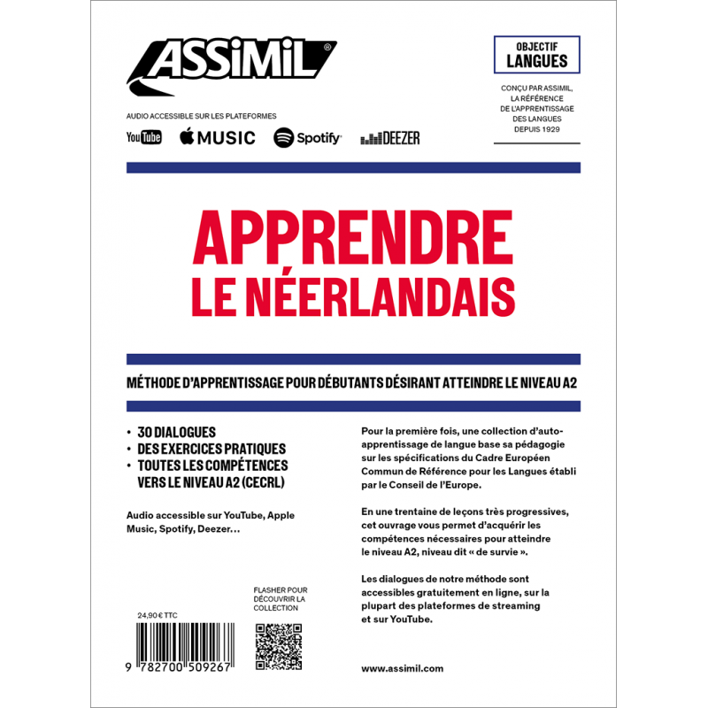 Destinado a principiantes de holandés amantes de la movilidad permite, en unas treinta lecciones muy progresivas en forma de diálogos, adquirir las competencias necesarias correspondientes al nivel A2, denominado « nivel de supervivencia ».