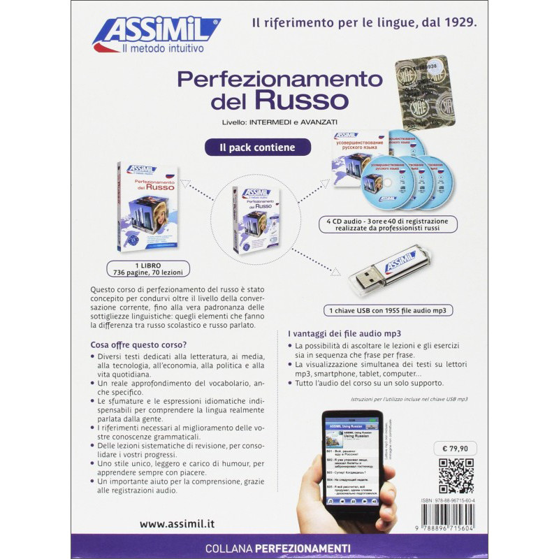 Este método va dirigido a personas que ya tienen una base de ruso, pero que desean consolidar sus conocimientos y avanzar más rápido. Aborda todos los temas representativos de la sociedad rusa: desde la cultura (arte, literatura, moda…) hasta la economía (ruso de los negocios), pasando por escenas de la vida diaria (en familia, en pareja, con los vecinos, en la ciudad…). En las siete lecciones profundiza en las nociones gramaticales ya conocidas de los alumnos y explica con detalle las más difíciles. Los lectores aprenderán divirtiéndose porque nuestro Perfeccionamiento está repleto de humor y bromas características del temperamento ruso. Objetivos: