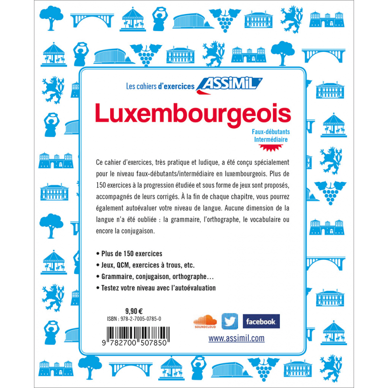 Ce cahier d’exercices, très pratique et ludique, a été conçu spécialement pour le niveau faux-débutants/intermédiaire en luxembourgeois. Plus de 150 exercices à la progression étudiée et sous forme de jeux sont proposés, accompagnés de leurs corrigés. À la fin de chaque chapitre, vous pourrez également autoévaluer votre niveau de langue. Aucune dimension de la langue n’a été oubliée : la grammaire, l’orthographe, le vocabulaire ou encore la conjugaison.