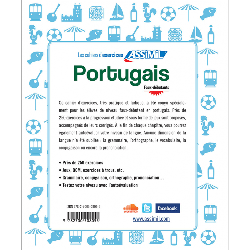 Ce cahier d’exercices, très pratique et ludique, a été conçu spécialement pour les élèves de niveau faux-débutant en portugais. Près de 230 exercices à la progression étudiée et sous forme de jeux sont proposés, accompagnés de leurs corrigés. À la fin de chaque chapitre, vous pourrez également autoévaluer votre niveau de langue. Aucune dimension de la langue n’a été oubliée : la grammaire, l’orthographe, le vocabulaire, la conjugaison ou encore la prononciation.