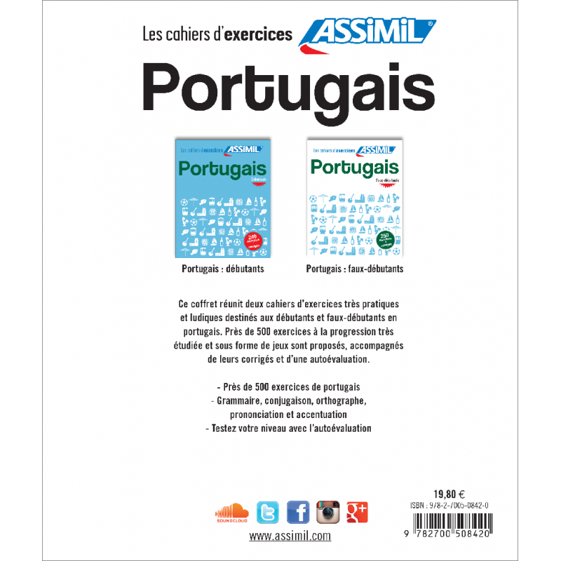 Ce coffret réunit deux cahiers d’exercices très pratiques et ludiques accompagnant des apprenants tout au long de leur progression d’un niveau débutants à intermédiaire. Près de 500 exercices de portugais à la progression étudiée et sous forme de jeux sont proposés, accompagnés de leurs corrigés et d’une autoévaluation.