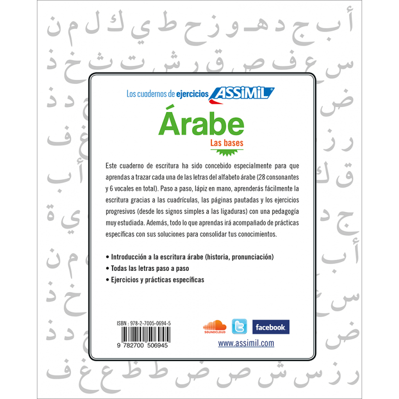 Ce cahier d’écriture a été spécialement conçu pour vous permettre d’apprendre à tracer chacune des lettres de l’alphabet arabe (28 consonnes et 6 voyelles en tout). Pas à pas, le crayon à la main, vous apprenez aisément l’écriture grâce aux grilles, aux pages lignées et aux exercices progressifs (des signes simples aux ligatures) à la pédagogie très étudiée. Chaque apprentissage est enfin ponctué d’entraînements spécifiques pour consolider vos acquis, accompagnés de leurs corrigés.