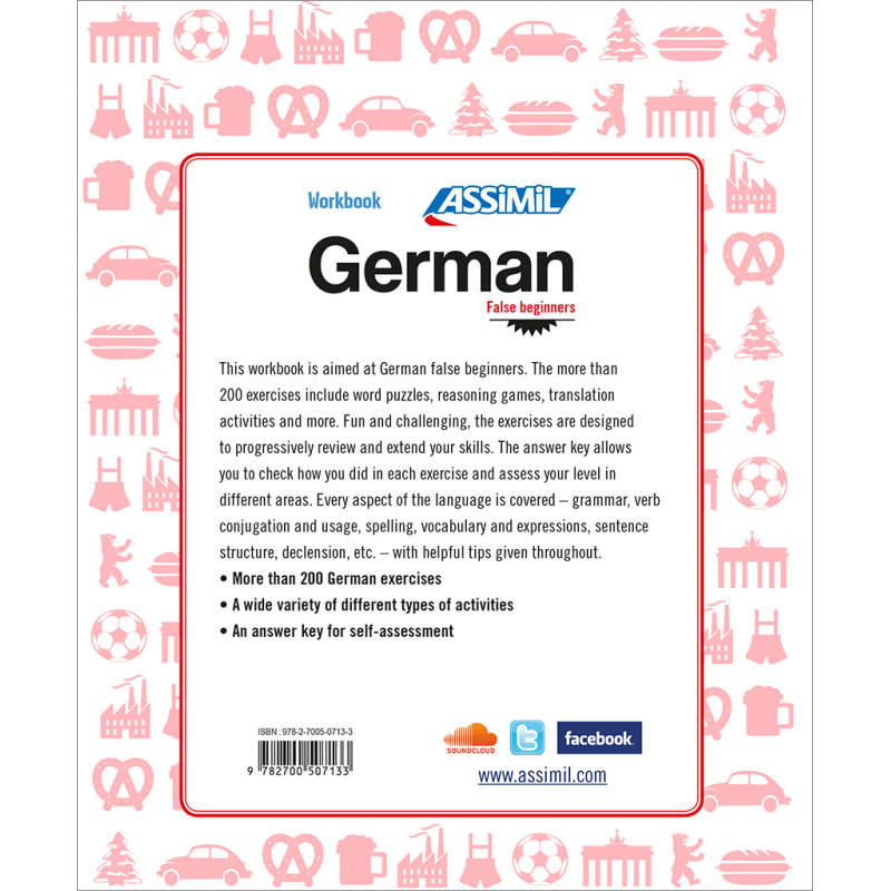 Ce cahier d’exercices, très pratique et ludique, a été conçu spécialement pour les faux-débutants en allemand. Plus de 200 exercices à la progression étudiée et sous forme de jeux sont proposés, accompagnés de leurs corrigés. À la fin de chaque chapitre, vous pourrez également autoévaluer votre niveau de langue. Aucune dimension de la langue n’a été oubliée : conjugaison, grammaire, étude des cas, orthographe, vocabulaire, syntaxe…