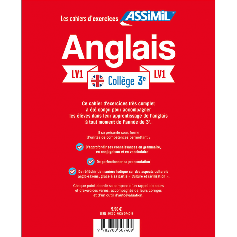 Ce cahier d’exercices très complet et ludique a été conçu pour accompagner les élèves dans leur apprentissage de l’anglais LV1 à tout moment de l’année de 3e. Présenté sous forme d’unités de compétences, il permet de progresser à la fois en grammaire, en conjugaison et en vocabulaire, de prendre de bonnes habitudes en prononciation et de rebrasser les connaissances acquises sous l’éclairage de la culture britannique.