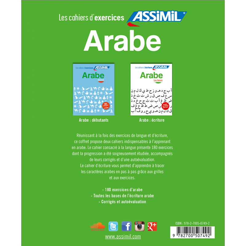 Réunissant à la fois des exercices de langue et d’écriture, ce coffret propose deux cahiers indispensables à l’apprenant en arabe. Le cahier consacré à la langue présente 180 exercices dont la progression a été soigneusement étudiée, accompagnés de leurs corrigés et d’une autoévaluation. Le cahier d’écriture vous permet d’apprendre à tracer les caractères arabes en pas à pas grâce aux grilles et aux exercices.