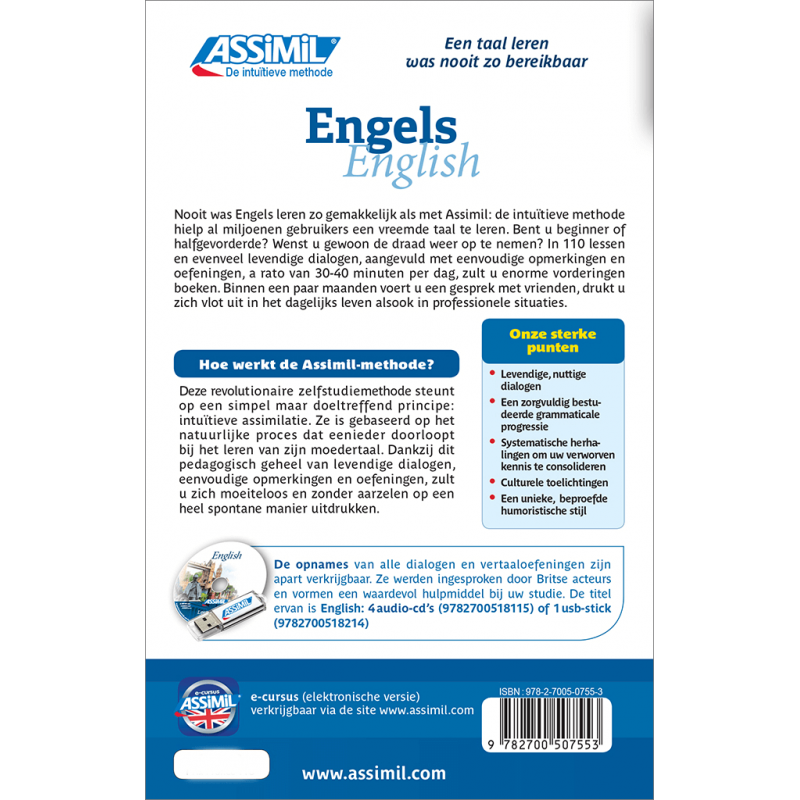 Les enregistrements de l’ensemble des leçons et des exercices de traduction sont disponibles séparément. Interprétés par des comédiens britanniques, ils seront un atout précieux pour votre apprentissage. Ils portent le titre : English - 4 CD audio (9782700518115), 1 CD mp3 (9782700518122), 1 clé USB (9782700518214) ou 1 téléchargement mp3 (3135414906789).
