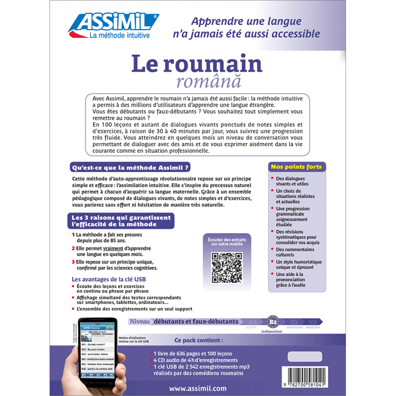 Les enregistrements, présentés dans ce coffret sur clé USB et CD audio, reprennent l’intégralité des textes en roumain des leçons et des exercices de traduction du livre. Ils sont interprétés par des locuteurs natifs professionnels. La clé USB permet de charger tout ou partie des enregistrements sur votre smartphone.