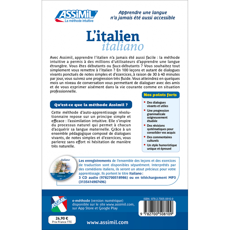Ils portent le titre : Italiano - 4 CD audio (9782700518986), 1 clé USB (9782700518993) ou 1 téléchargement mp3 (3135414907496).