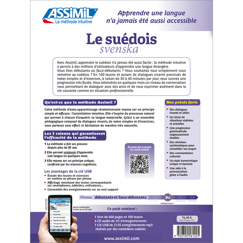 Comparé au français, le suédois est une langue plutôt simple aux sonorités séduisantes. La confiance, principe fondamental du fameux modèle suédois, nous porte à croire que vous serez capable, à l'issue de cette méthode attrayante, de vous exprimer naturellement avec les habitants, dont vous découvrirez qu'ils se tutoient tous.