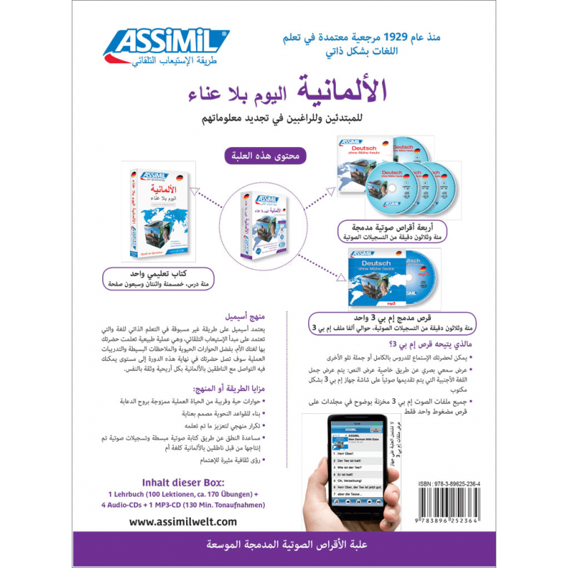 Cette méthode permet aux débutants, en six à huit mois, de converser dans la langue de Goethe tout en découvrant les us et coutumes d’un pays dont l’économie est primordiale au sein de la communauté européenne : de la phase d'imprégnation à la phase d'activation, en 20 à 30 minutes d’étude quotidienne, vous acquerrez le vocabulaire, la grammaire, la syntaxe, c’est-à-dire l’essentiel des connaissances à maîtriser pour communiquer !