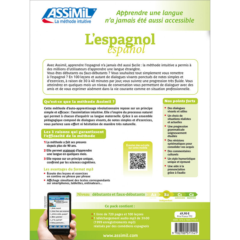 Cette nouvelle édition de notre best-seller présente 100% de contenus inédits. Les dialogues de cette nouvelle méthode sont vivants, actuels, riches en vocabulaire utile et illustrent parfaitement les réalités et les évolutions de la langue orale espagnole haute en couleur et en expressions idiomatiques. Les notes grammaticales accompagnant chaque dialogue permettront au lecteur d’appréhender sans heurts tous les pièges et difficultés de la langue et les nombreuses notes de civilisation lui présenteront une culture très attachante.