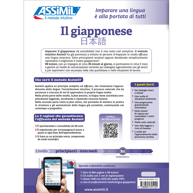 Voici une nouvelle édition mise à jour de ce classique de la collection Senza Sforzo, pour apprenant italien. Permettant un véritable démarrage de l’apprentissage du japonais, la méthode Assimil a fait ses preuvesmême pour cette langue réputée difficile.Au fil des 98 leçons, vous allez acquérir petit à petit les bases de la langue parlée et les "clés" de son écriture. Le but à atteindre est la maitrise de 900 idéogrammes qui permet de tenir une conversation de la vie de tous les jours.