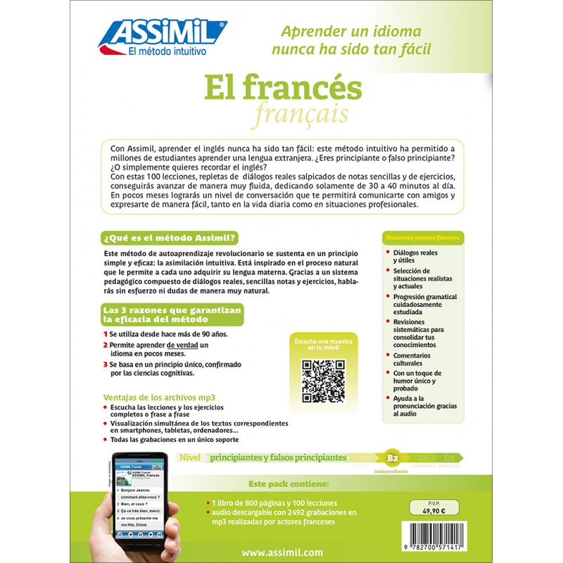 Une méthode avec laquelle rien n’est à apprendre par coeur, idéale pour débuter ou réviser. L’apprenant commence à savoir parler français au bout de deux mois et la grammaire est assimilée intuitivement. Le niveau atteint après six mois est celui de la conversation courante avec la maîtrise de 1500 à 2000 mots de vocabulaire.