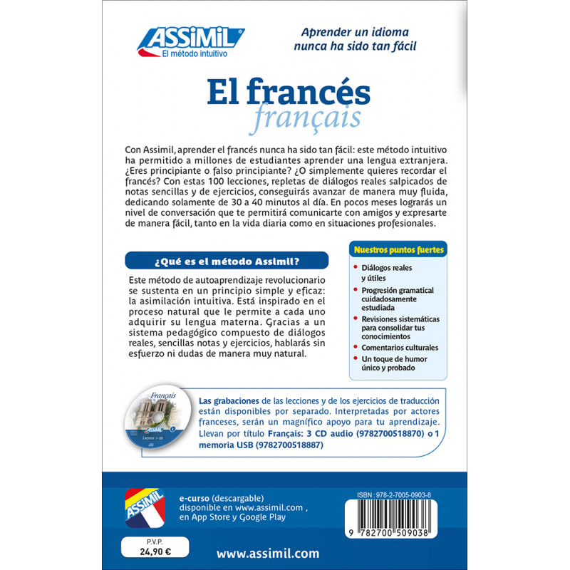 Les enregistrements de l’ensemble des leçons et des exercices de traduction sont disponibles séparément. Interprétés par des locuteurs natifs professionnels, ils seront un atout précieux pour votre apprentissage. Ils portent le titre : Français - 3 CD audio (9782700518870), 1 clé USB (9782700518887) ou 1 téléchargement mp3 (3135414907366).