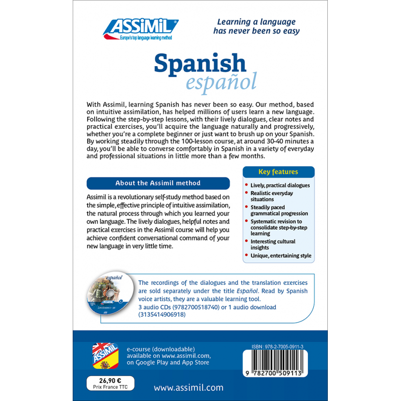 Les enregistrements de l’ensemble des leçons et des exercices de traduction sont disponibles séparément. Interprétés par des comédiens professionnels, ils seront un atout précieux pour votre apprentissage. Ils portent le titre : Español - 4 CD audio (9782700518740), 1 clé USB (9782700518559) ou 1 téléchargement mp3 (3135414906918).