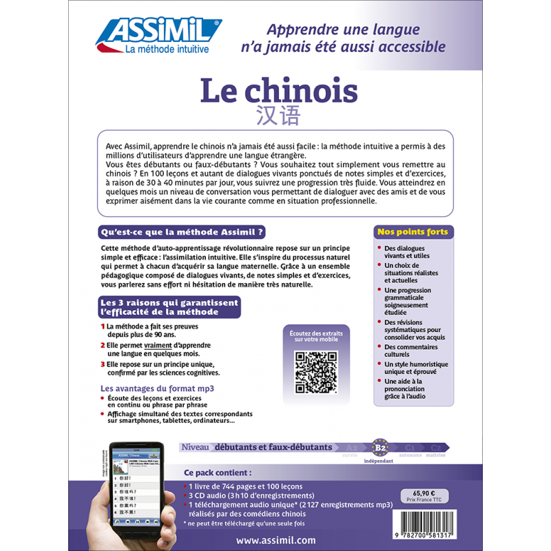 Un livre de 100 leçons en 744 pages, 3 CD audio et 1 téléchargement audio d'une durée de 3 h 10.