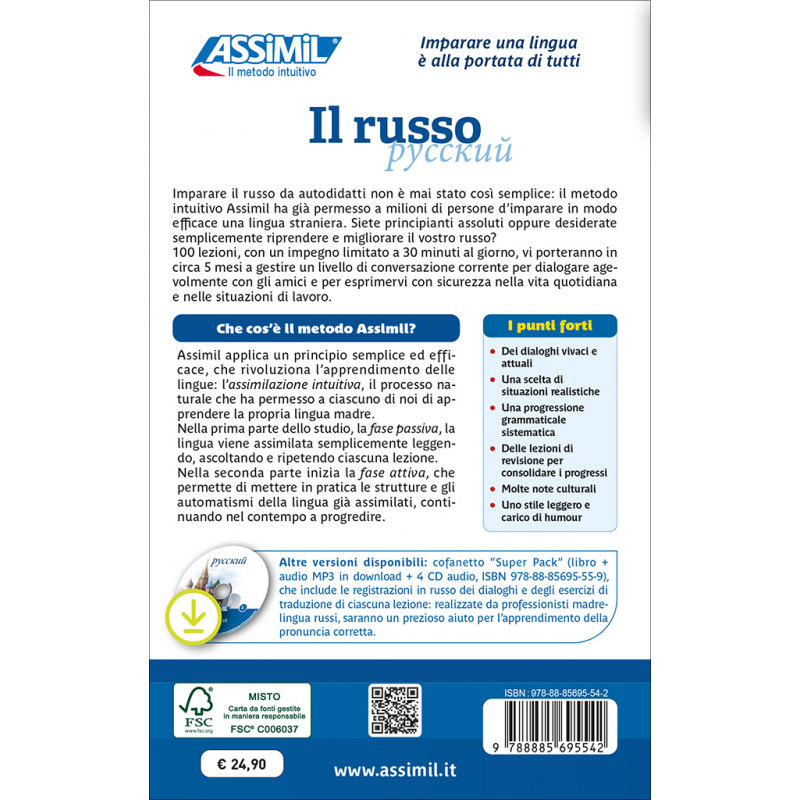 Les enregistrements de l’ensemble des leçons et des exercices de traduction sont disponibles séparément. Interprétés par des comédiens russes, ils seront un atout précieux pour votre apprentissage. Ils portent le titre : Русский - 4 CD audio (9782700512830), 1 CD mp3 (9782700512915), 1 clé USB (9782700518306) ou 1 téléchargement mp3 (3135414907182).