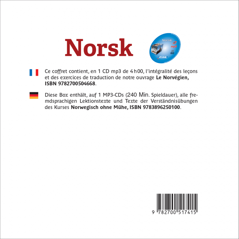 Ce coffret comprend les enregistrements correspondant aux livres Le norvégien (ISBN 9782700504668 ou 9782700508406) et Norwegisch ohne Mühe (ISBN 9783896250100).