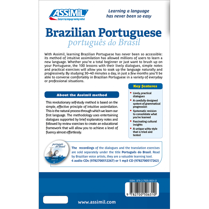 Les enregistrements de l’ensemble des leçons et des exercices de traduction sont disponibles séparément. Interprétés par des comédiens professionnels, ils seront un atout précieux pour votre apprentissage. Ils portent le titre : Português do Brasil - 4 CD audio (9782700512267), 1 CD mp3 (9782700517262), 1 clé USB (9782700518474) ou 1 téléchargement mp3 (3135414907168).