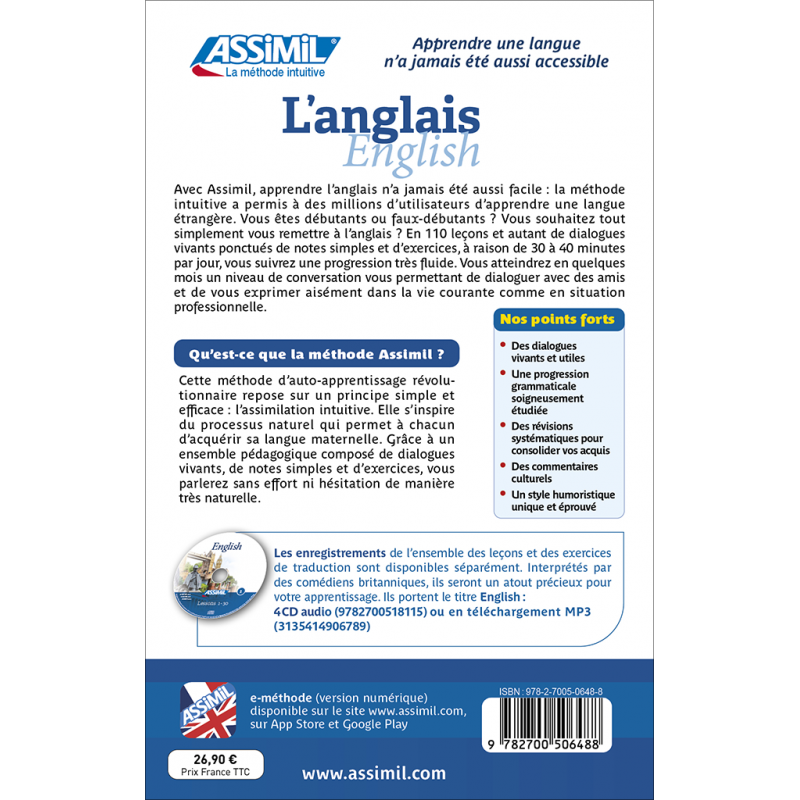 Envie d'apprendre l'anglais ou de vous y remettre ? Notre best-seller (près de 400.000 exemplaires vendus au XXIe siècle), dans sa dernière édition, vous promet un apprentissage fluide et agréable. Les évolutions structurelles de la langue, l’apparition de nouveaux termes et tournures idiomatiques sont régulièrement prises en compte pour vous offrir la meilleure méthode d’anglais contemporain.