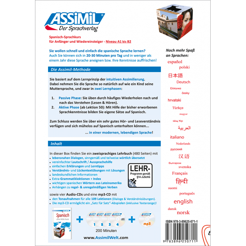 Plus de 450 millions de personnes dans le monde parlent espagnol ou, pour être plus précis, le castillan. Alors, pourquoi pas vous ? Les 109 leçons de cette méthode vous permettent d’apprendre progressivement jusqu’à atteindre un niveau de conversation courante.