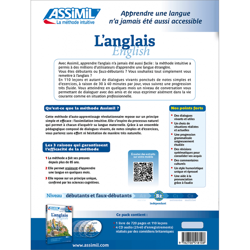Envie de vous mettre à l'anglais ou de vous y remettre après une longue période sans pratiquer ? Notre best-seller (près de 400.000 exemplaires vendus au XXIe siècle), dans sa dernière édition, vous promet un apprentissage fluide et agréable. Les évolutions structurelles de la langue, l’apparition de nouveaux termes et tournures idiomatiques sont régulièrement prises en compte pour vous offrir la meilleure méthode d’anglais contemporain.