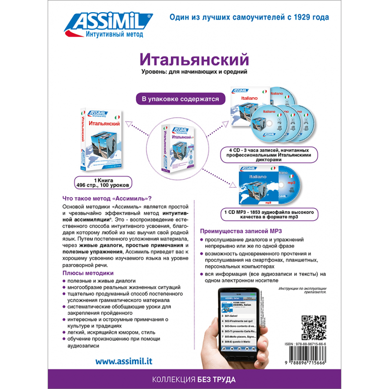 Un livre de 100 leçons en 496 pages, 4 CD audio et 1 CD mp3 (1853 fichiers) d’une durée de 3 h