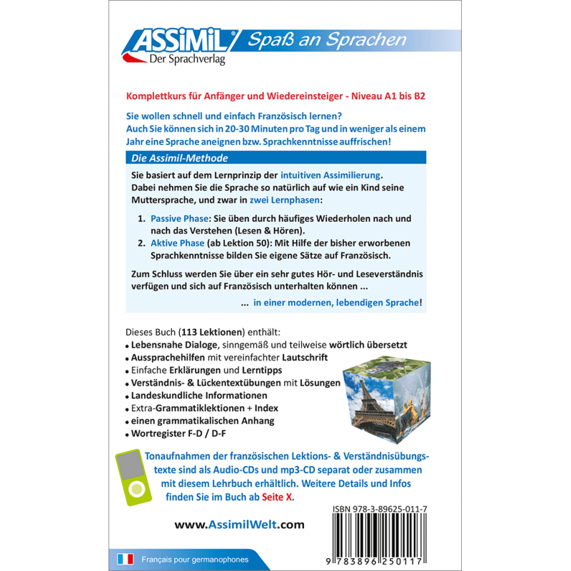 Les enregistrements de l’ensemble des leçons et des exercices de traduction sont disponibles séparément. Interprétés par des comédiens français, ils seront un atout précieux pour votre apprentissage. Ils portent le titre : Français - 4 CD audio (9782700512199), 1 CD mp3 (9782700512892), 1 clé USB (9782700518450) ou 1 téléchargement mp3 (3135414906932)