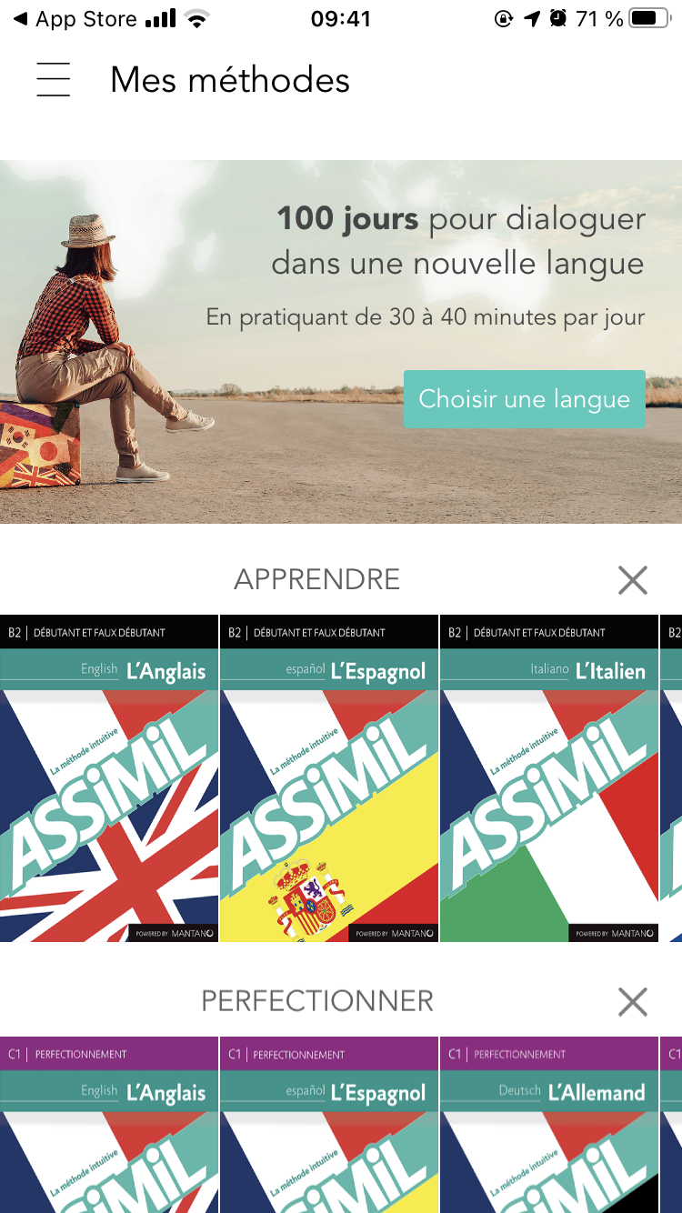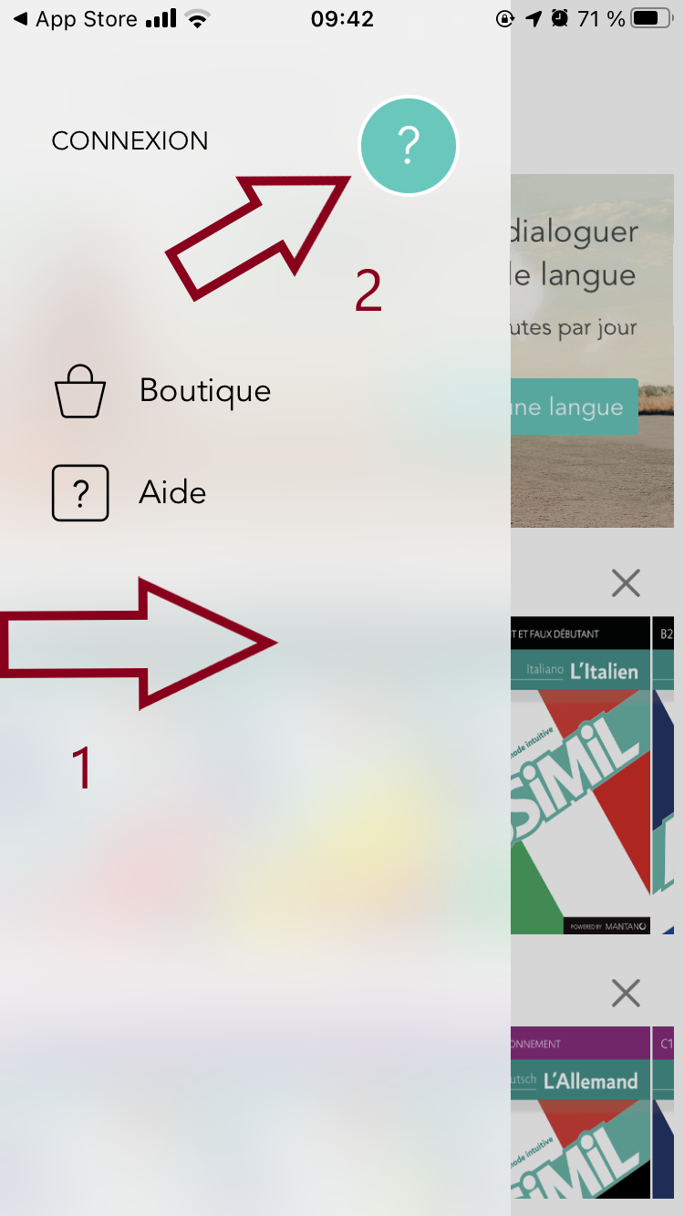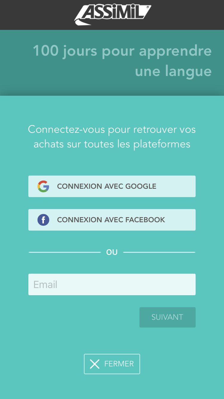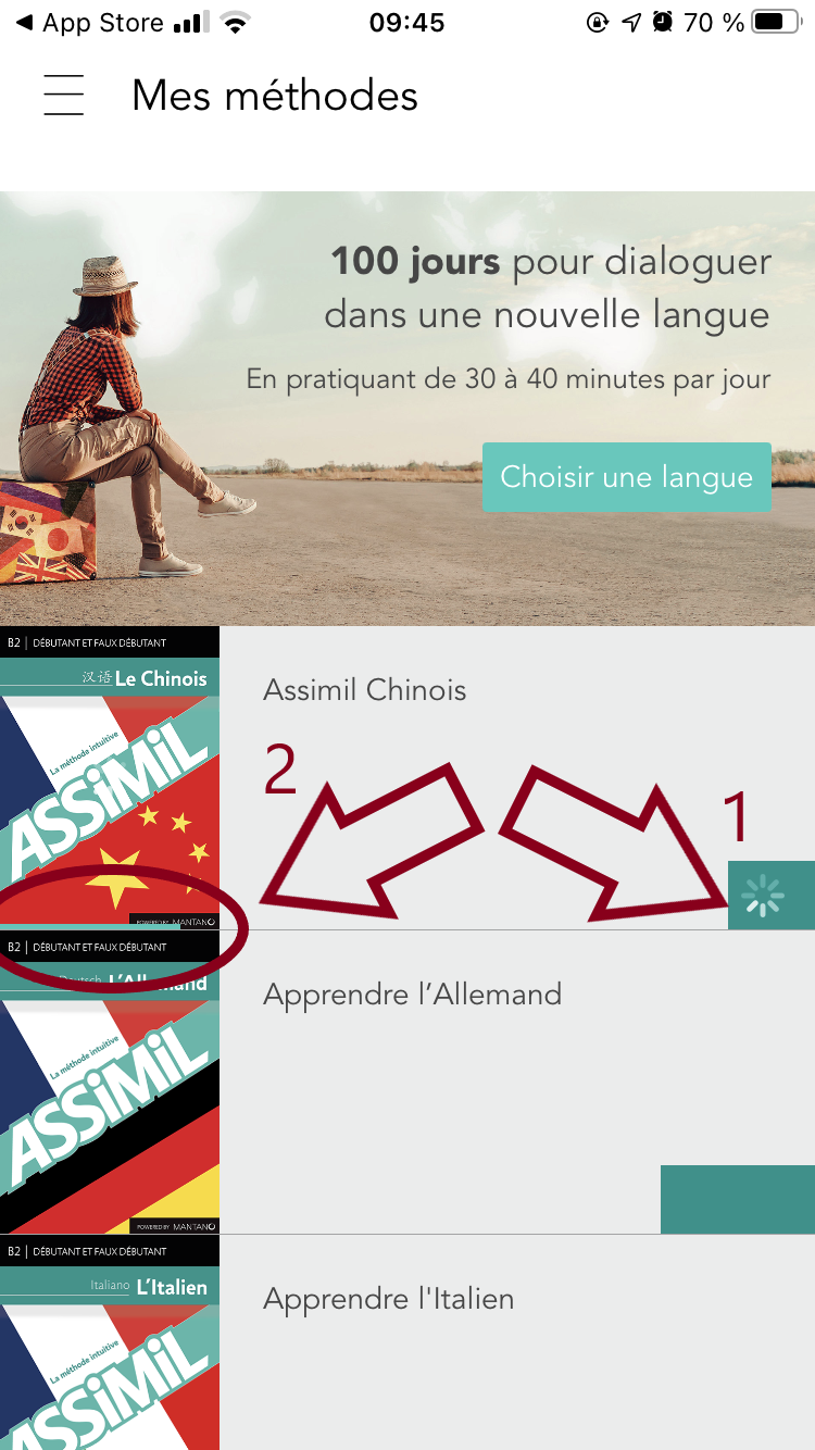 Pour récupérer la version complète depuis un appareil mobile iOS (iPhone ou iPad), lancez l'application "Assimil" ("Assimil - Apprenez des langues" sur l'App Store).