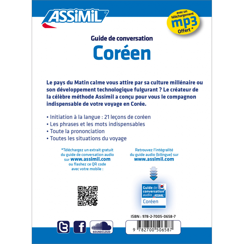 Le pays du Matin calme vous attire par sa culture millénaire ou son développement technologique fulgurant ? Le créateur de la célèbre méthode Assimil a conçu pour vous le compagnon indispensable de votre voyage en Corée du Sud.