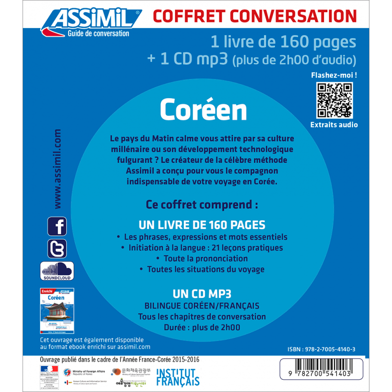 Le pays du Matin calme vous attire par sa culture millénaire ou son développement technologique fulgurant ? Le créateur de la célèbre méthode Assimil a conçu pour vous le compagnon indispensable de votre voyage en Corée du Sud.