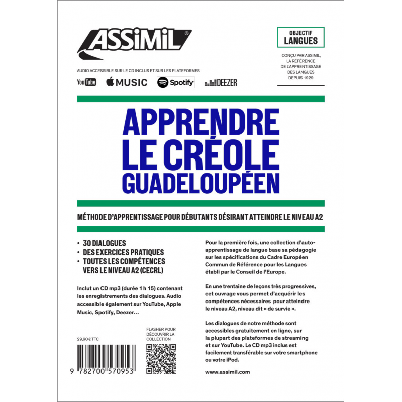 Apprendre le créole guadeloupéen n’a jamais été aussi simple avec notre nouvelle méthode, livre et audio accessible sur CD et plateformes de streaming gratuitement. Destinée aux grands débutants en créole guadeloupéen amoureux de mobilité, elle permet, en une trentaine de leçons très progressives sous forme de dialogues, d’acquérir les compétences nécessaires correspondant au niveau A2, dit « niveau de survie ».
